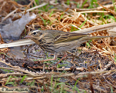 | Olive-backed Pipit (Anthus hodgsoni): up to five were still present at Eilot's date plantation in mid April. |